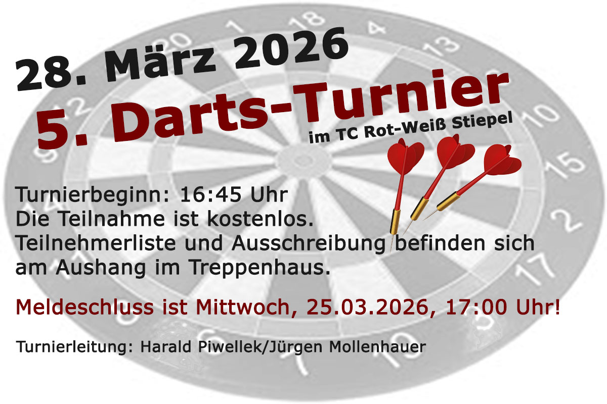 Ankündigung zum 5. Darts-Turnier des TC Rot-Weiß Stiepel