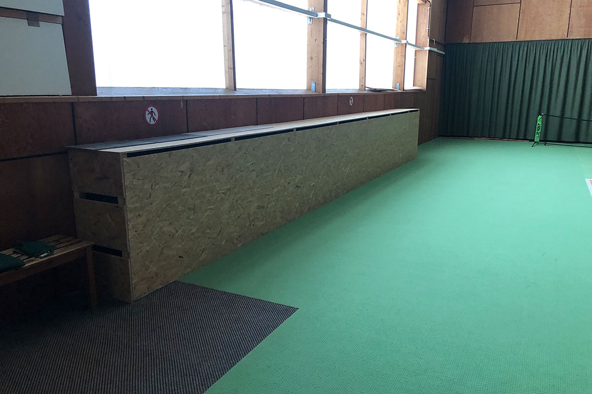 Box für Trainings EquipmentVon den Mitgliedern wurde in unserer Online-Befragung angeregt, in der Tennishalle die Teppichrollen und das Equipment der Tennisschule aufzuräumen. Dies ist in den letzten Wochen umgesetzt worden. Box für TeppichresteAlle Teppichrollen sind in einer Box auf Platz A gestapelt. Für das Equipment der Tennisschule wurde ebenfalls eine Box gebaut und kann nach Gebrauch in einer Holzbox gelagert werden. Das lästige Suchen der Tennisbälle hat jetzt ein Ende.