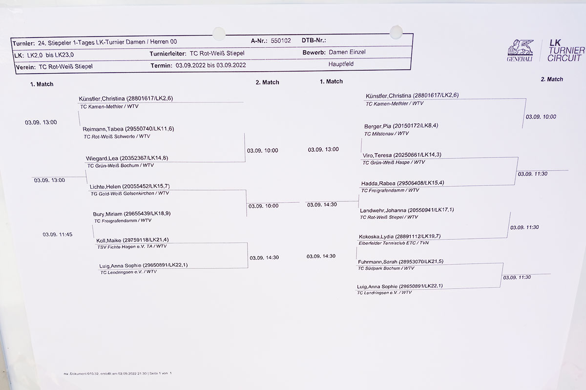 LK-Turnier Herren TableauIm September war es mal wieder so weit. Endlich, nach 2-jähriger Pause fanden auf unserer Anlage wieder die von Ralf Kenkmann organisierten und geleiteten LK-Tagesturniere statt.