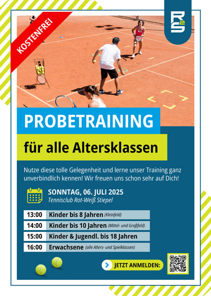 Am 06. Juli laden wir alle Kinder, Jugendlichen und Erwachsenen herzlich zu einem Probetraining/Schnuppertag ein. Kommt vorbei, um unsere neue Tennisschule R2S Tennis Academy, mit der wir ab dem 01. Oktober kooperieren, kennen zu lernen!